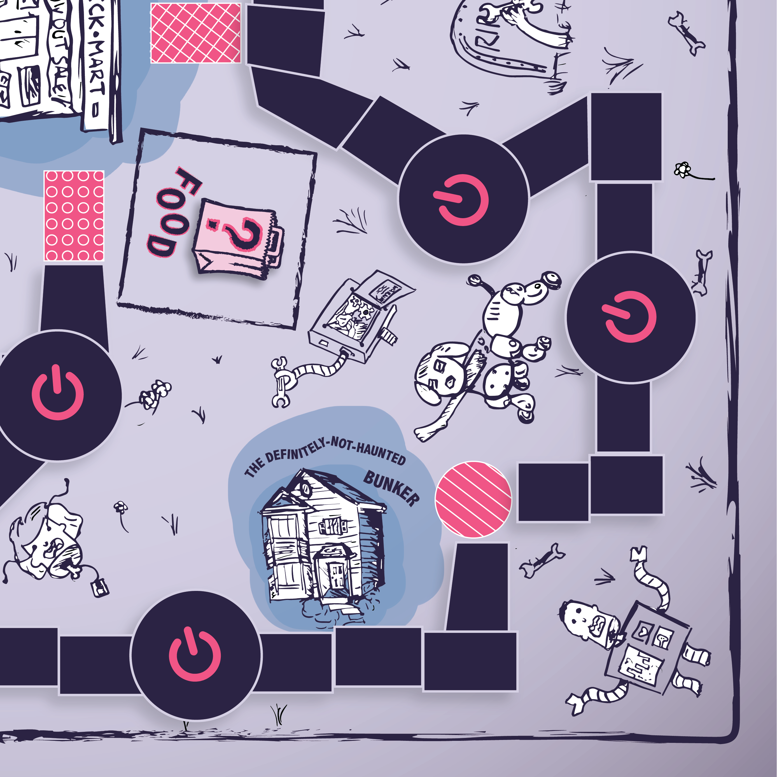 While you’re here you might as well check out this *very* scientifically accurate board game about the AI Apocalypse. Win by getting to your assigned safehouse before the other survivors. Pick up food along the way, avoid traps, and sabotage the competition for good measure.